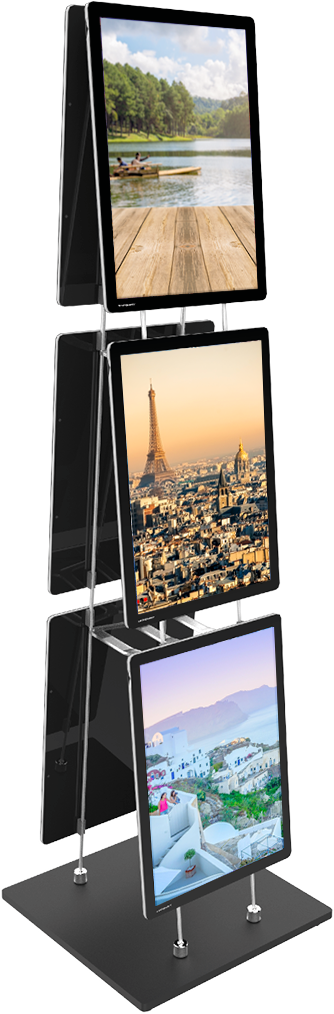 Vm Mobile Stand Easy Clip to podłogowy stand reklamowy, wyposażony w system mocowania zatrzaskowego. Dzięki takiemu rozwiązaniu jest to produkt modułowy, o wielu konfiguracjach. Łatwy i szybki montaż, lekka konstrukcja czyni to rozwiązanie dobrym wyborem na wszelkiego rodzaju targi handlowe, ale sprawdzi się również w sklepach i witrynach. Na stojaku można zamontować zarówno ramki VM Two Clip jak i ekrany VM Light & Play.