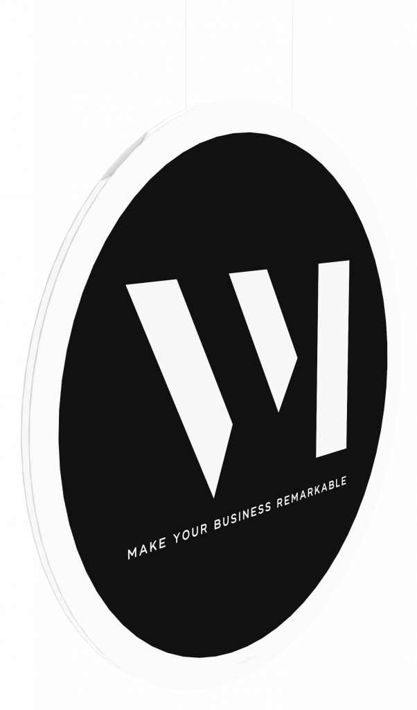 VM Sign to wyjątkowa, zaokrąglona ramka podświetlana LED. Innowacyjne, oryginalne rozwiązanie, idealne do promowania twojego biznesu. Wyposażona w podświetlenie po obydwu stronach, umożliwia dwustronną prezentację treści. VM Sign to produkt, który można zamontować zarówno w witrynie jak i na ścianie.
